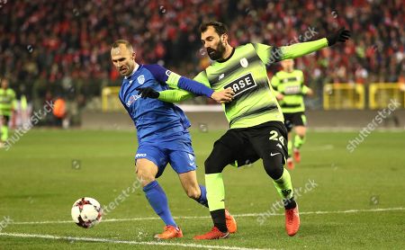 Standard S Hugo Siquet And Genk S Theo Bongonda Fight For The Ball During The Croky Cup Belgian Cup Final Between Krc Genk And Standard De Liege Su Stock Photo Alamy